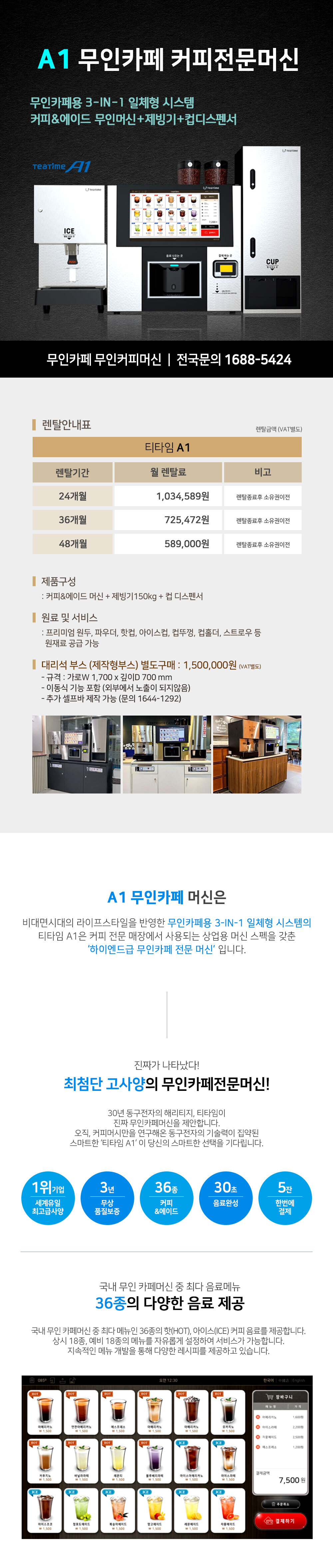 [렌탈] 티타임 A1 무인카페 전문머신 48개월 메뉴36종 3in1 일체형 시스템