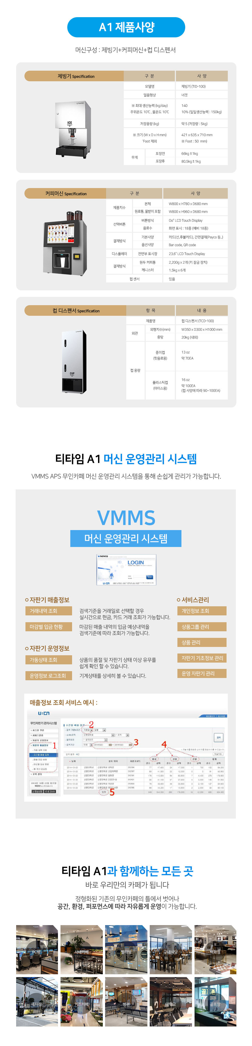 [임대] 티타임 A1 무인카페 전문머신 메뉴36종 3in1 일체형 시스템