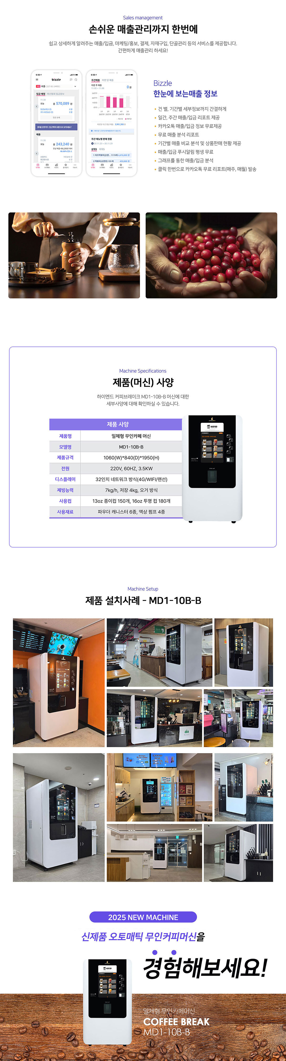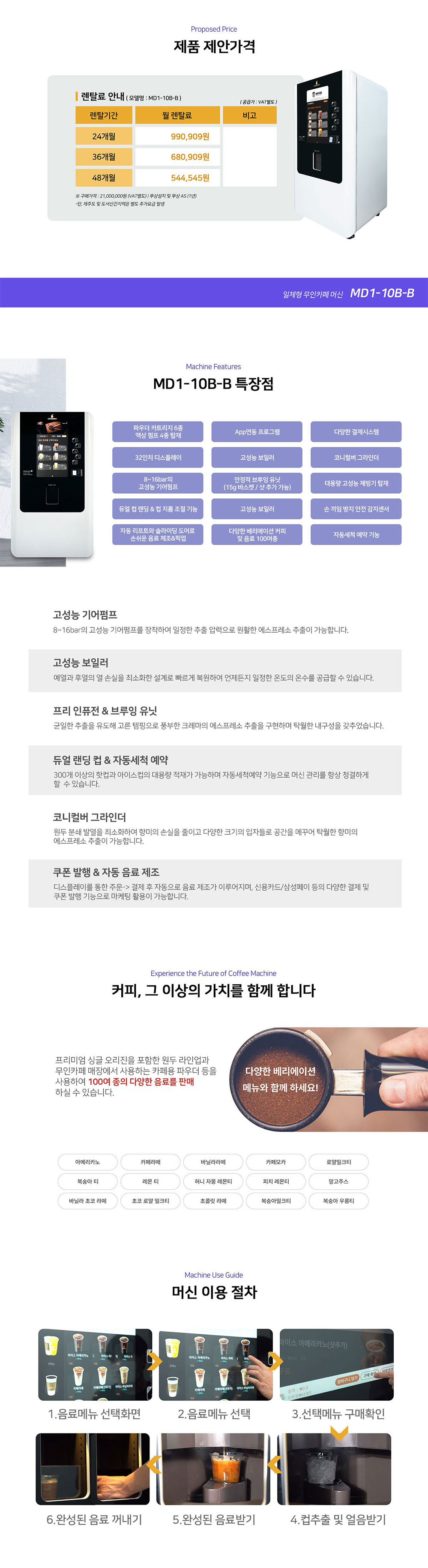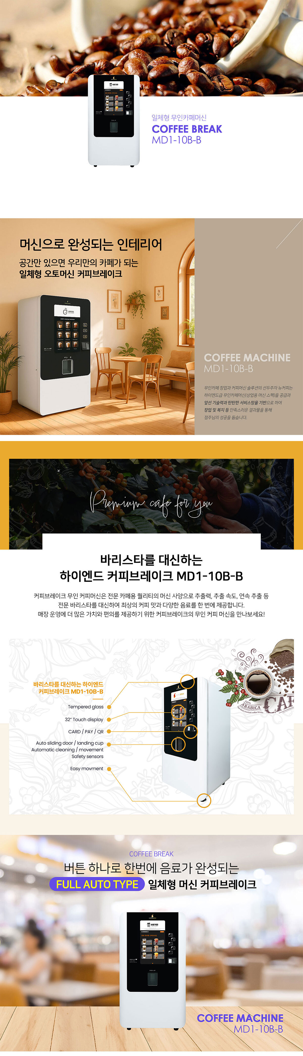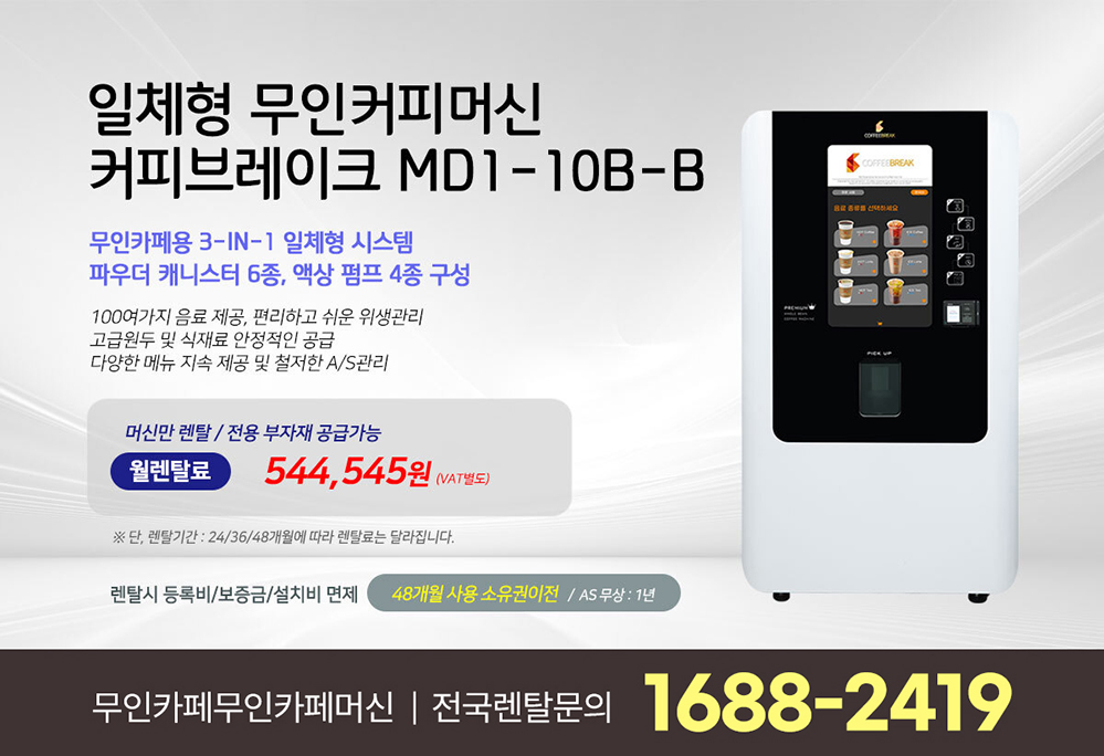 [렌탈] 일체형 무인카페 머신 커피브레이크 MD1-10B-B 무인카페창업