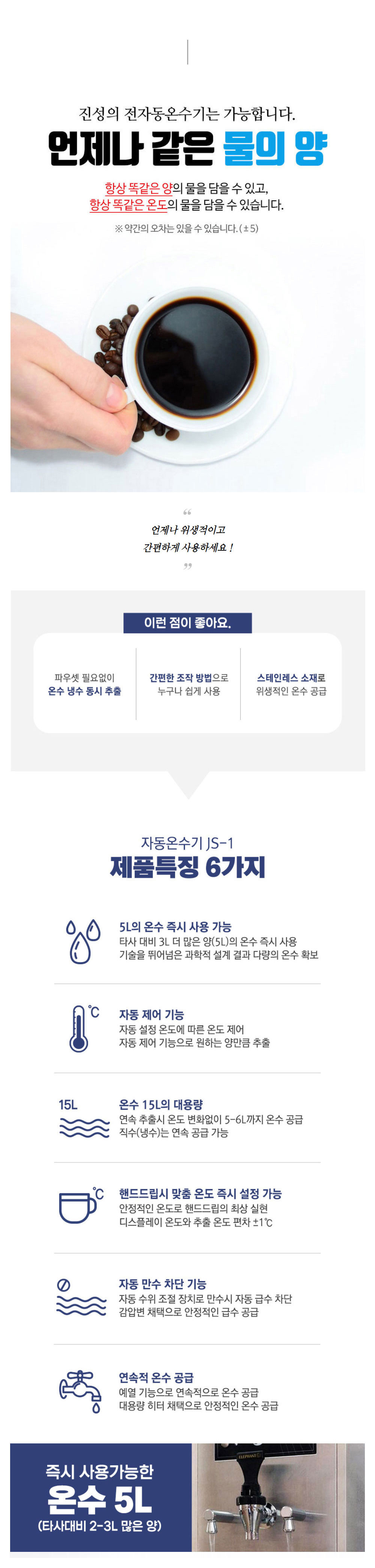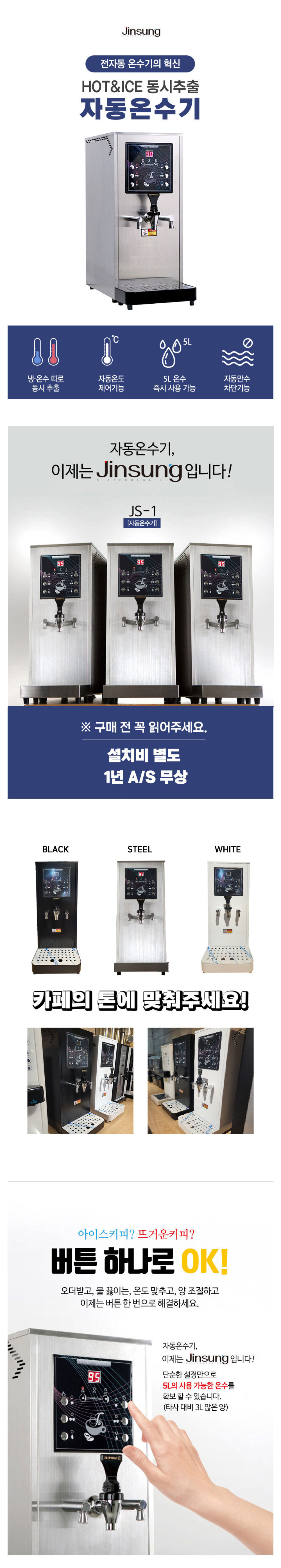 [렌탈] 진성 JS-1 자동 전기온수기 3구 블랙 온수5리터