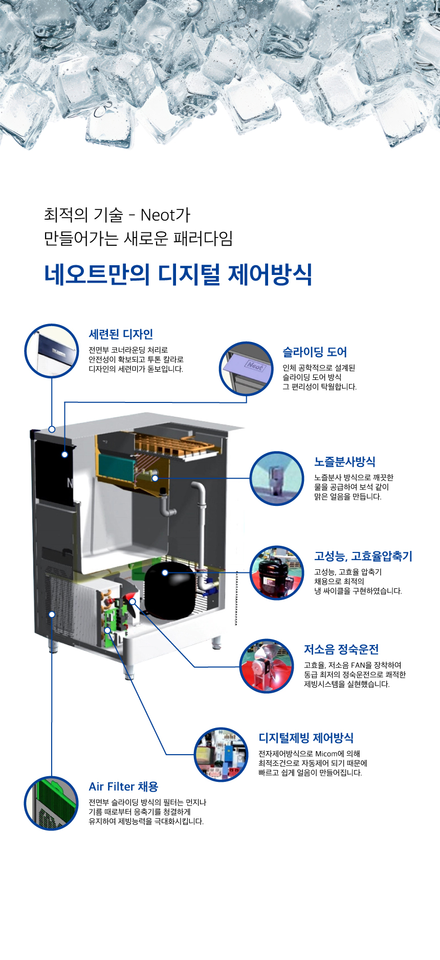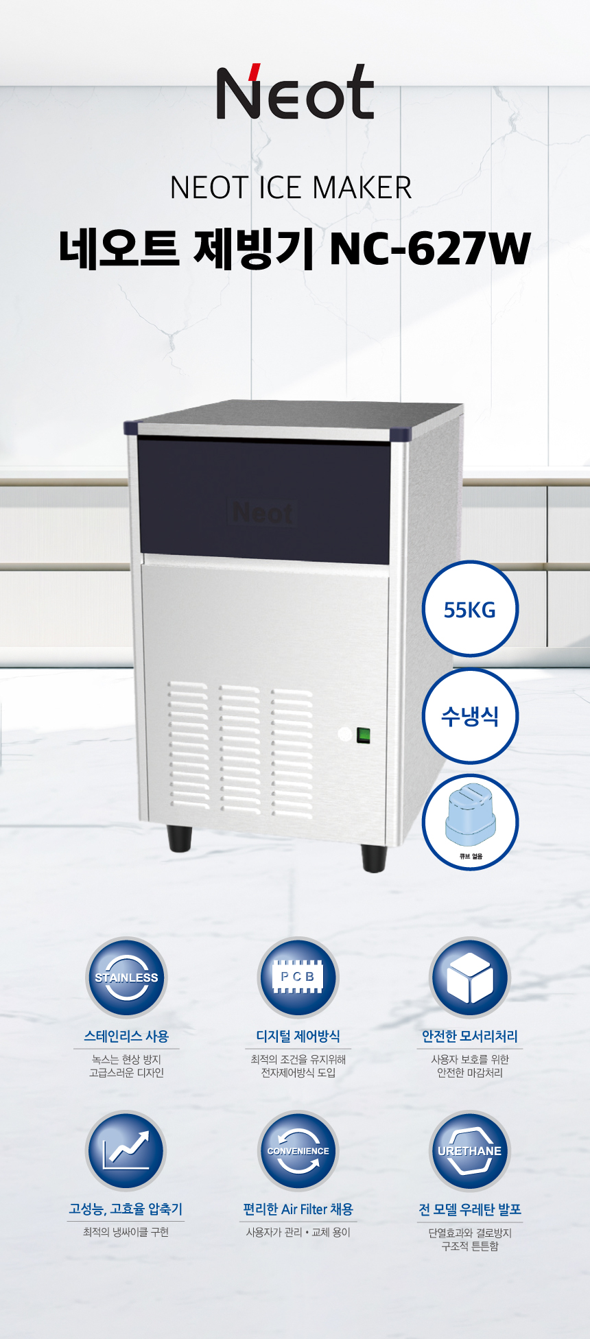 네오트 제빙기 NC-627W 수냉식 일생산 55kg 큐브형 얼음 업소용